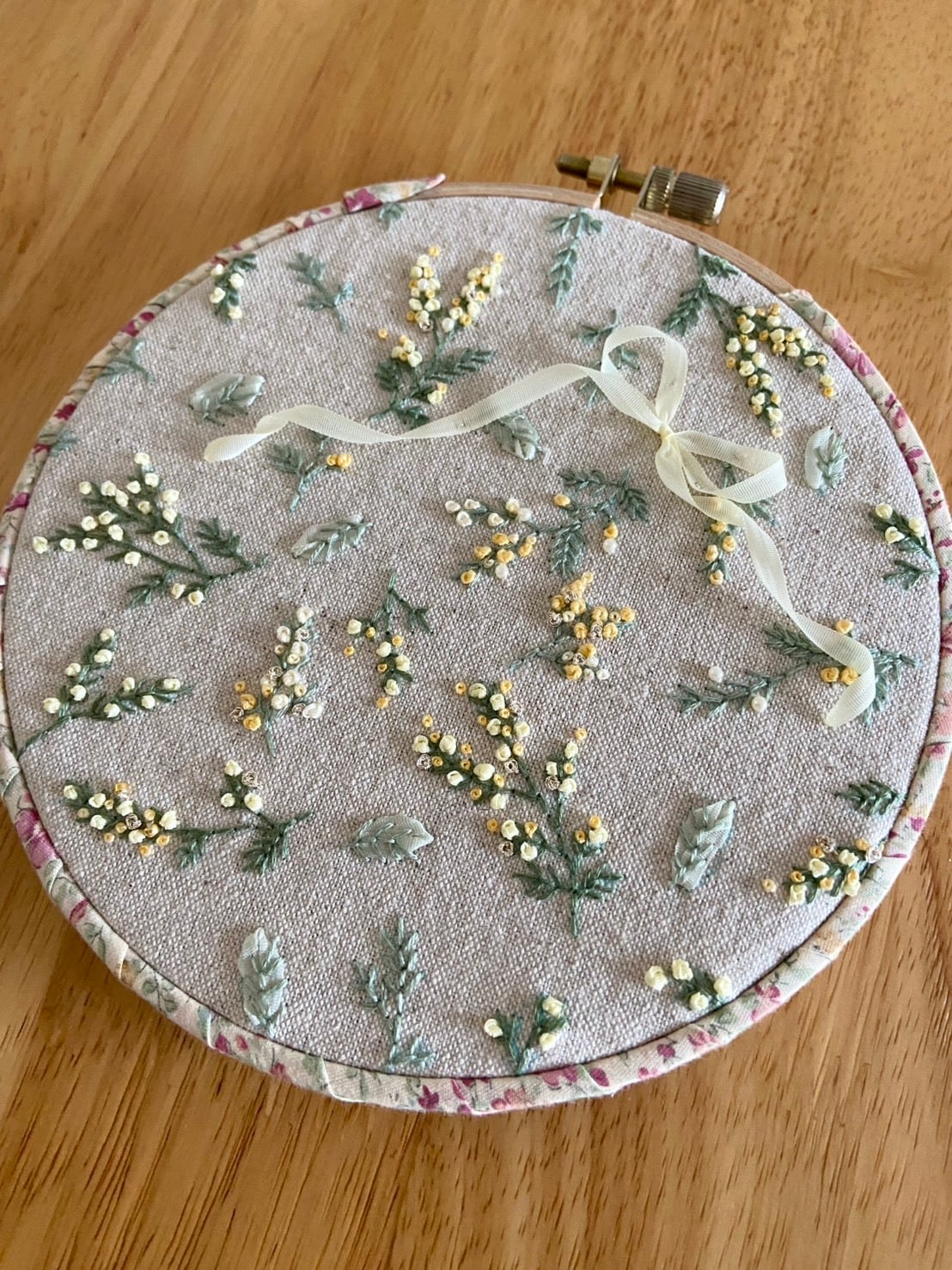 春の訪れを感じる「春のミモザのタペストリー[リボン刺繍キット]」が新登場!初心者の方でも楽しめるように、やり方動画付きです♡