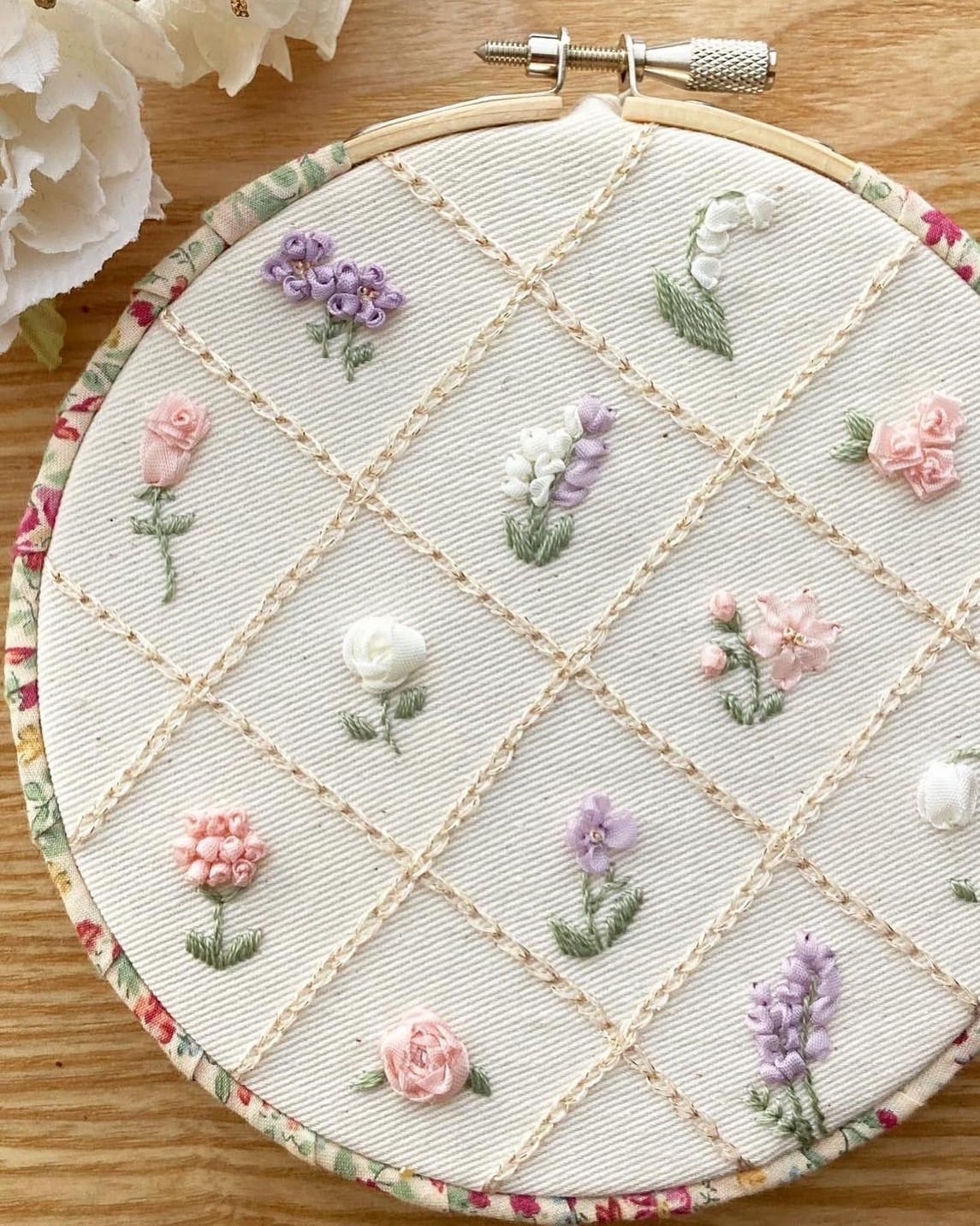 *刺繍枠の花柄バイアステープは付きません。刺繍枠のそのままを楽しんでいただいても良し♡お好みのバイアステープを巻いても良しです♡