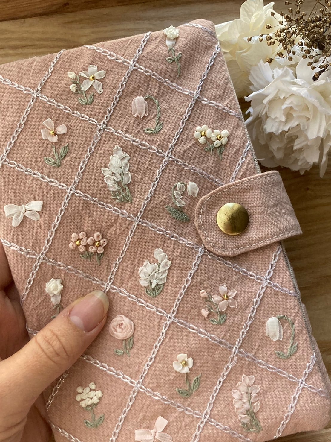 ふわふわのリボン刺繍が可愛い「お花たちのマルチケース」