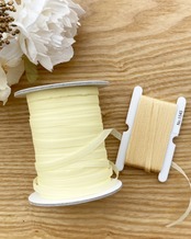 茎や葉は刺繍糸、花びらはリボンで。